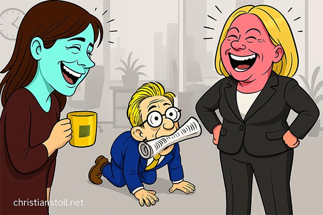 Seiner Darstellung zufolge begegnen ihm die beiden Mitarbeiterinnen mit zunehmender Feindseligkeit, seit er sich gegen einen Behördenbescheid zur Wehr gesetzt hat. Der Grund: Eine ungerechtfertigte Kürzung seiner Bezüge und den Versuch der Schuldumkehr.→